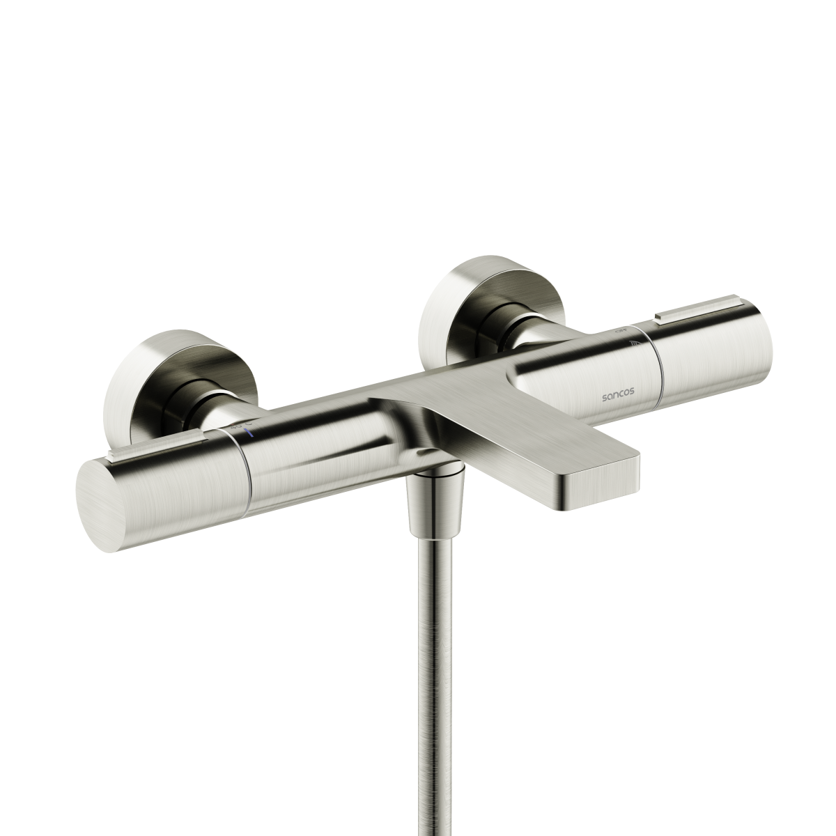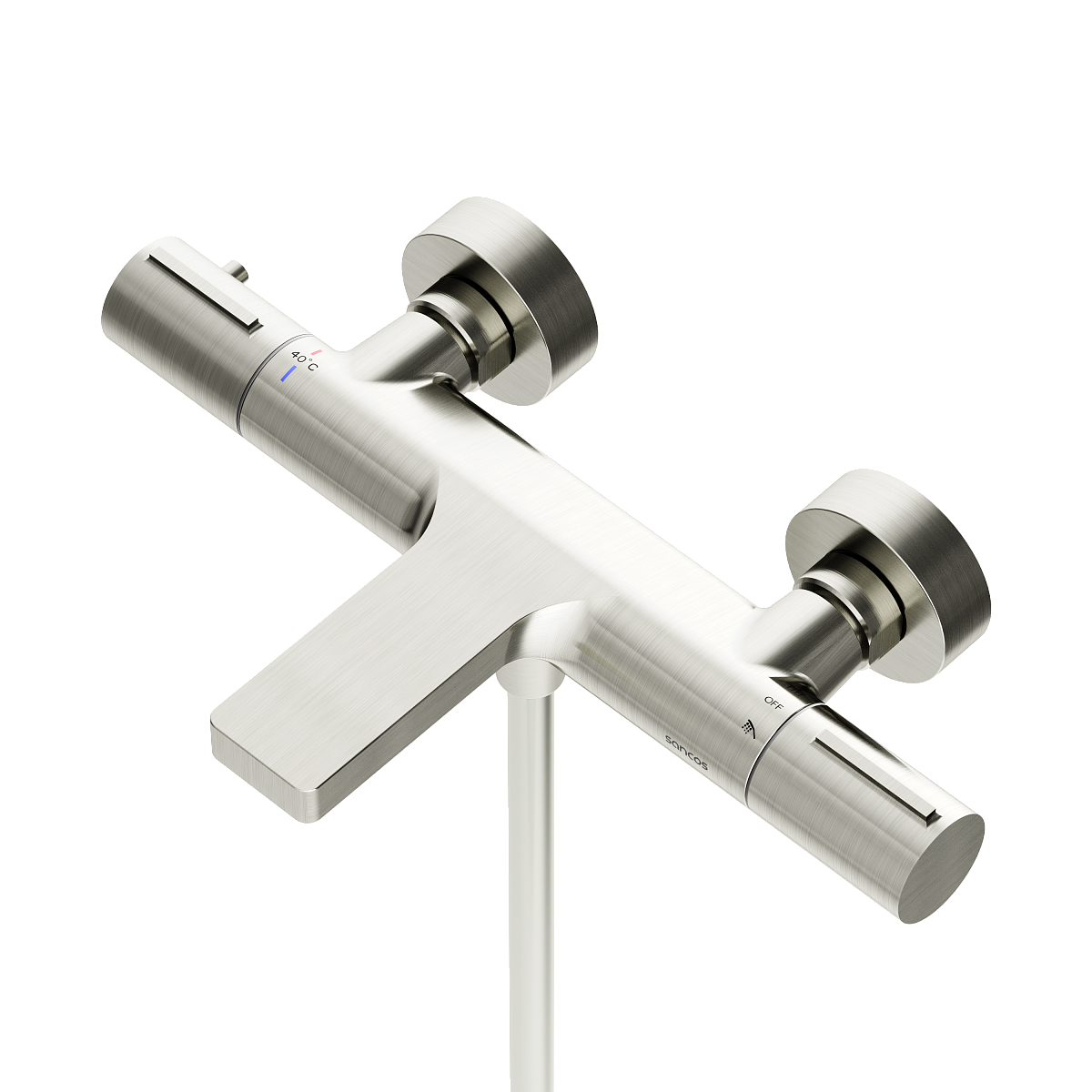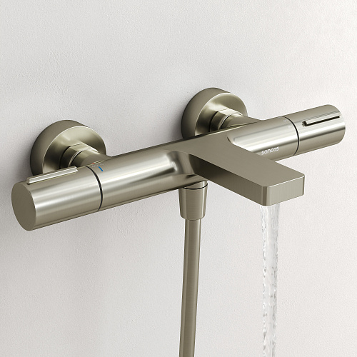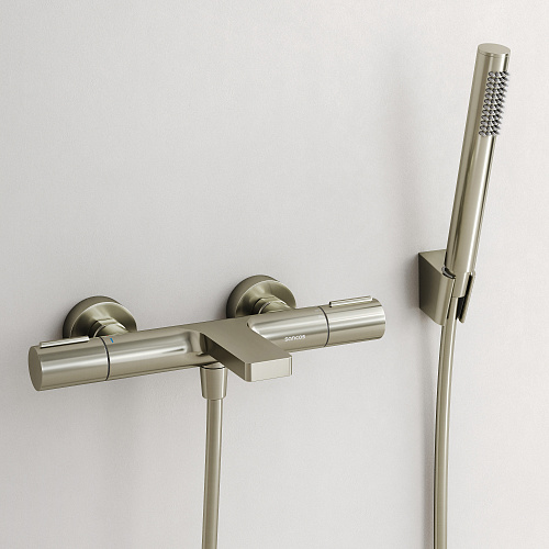 Смеситель для ванны и душа с термостатом; Корпус выполнен из прочной латуни; Фиксированный излив; Высокочувствительный катридж SEDAL (Испания) позволит мгновенно настроить желаемую температуру воды; Мягкий поток воды без разбрызгивания за счёт силиконовых аэраторов Neoperl®;Предустановленный ограничитель температуры при 40°; Система защиты от ожогов при отключении холодной воды; Встроенный дивертер для переключения между источниками воды; Встроенный клапан защиты от обратного потока; Экстра прочное покрытие PVD; Цвет брашированный никель