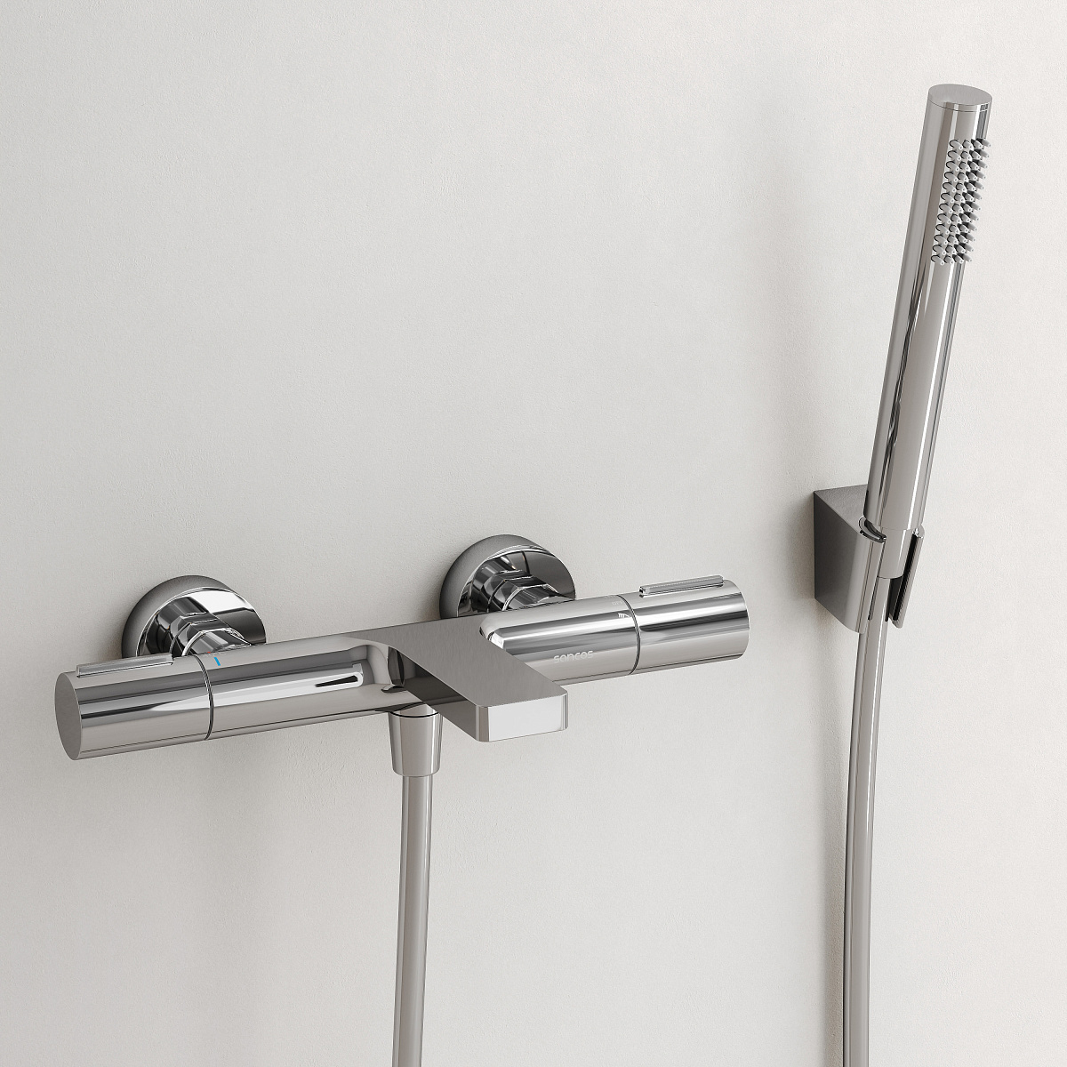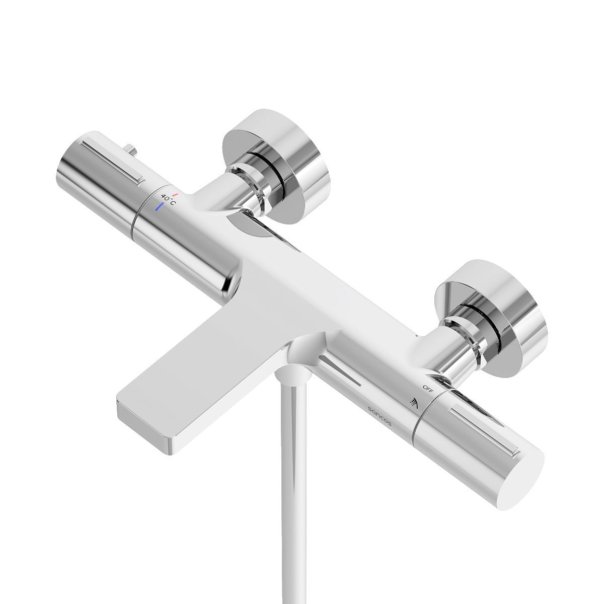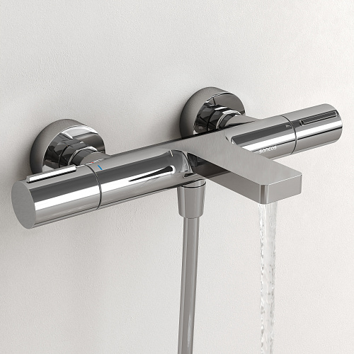 Смеситель для ванны и душа с термостатом; Корпус выполнен из прочной латуни; Фиксированный излив; Высокочувствительный катридж SEDAL (Испания) позволитмгновенно настроить желаемую температуру воды; Мягкий поток воды без разбрызгивания за счёт силиконовых аэраторов Neoperl®; Предустановленный ограничитель температуры при 40°; Система защиты от ожогов при отключении холодной воды; Встроенный дивертер для переключения между источниками воды; Встроенный клапан защиты от обратного потока; Цвет хром глянцевый