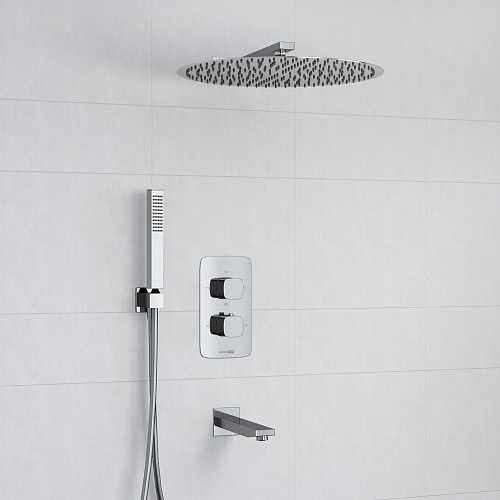 Оснащение Термостатический смеситель для ванны и душа Naab 8644 Thermo, Подключение шланга A125, Шланг для душа 1500 мм А087, Верхняя душевая насадка A117, Верхний излив для душа A090, Лейка 1-функциональная A103, Настенный излив для ванны A091