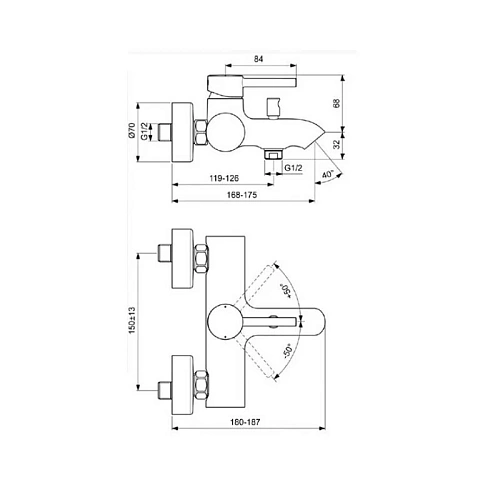 Смеситель Ideal Standard BC675U4 Kolva для ванны/душа, черный/хром