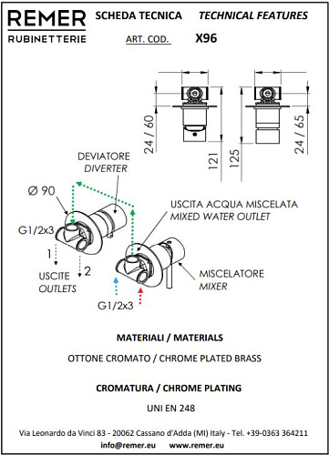 Смеситель для ванны и душа встраиваемый Remer Rubinetterie X STYLE X96NO