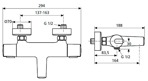 Смеситель Ideal Standard A4623AA Ceratherm 100 для ванны/душа термостатический, Chrome (хром)