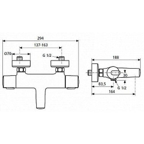 Смеситель Ideal Standard A6423AA Ceratherm 25 для ванны/душа термостатический, Chrome (хром)