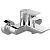 TESI Настенный смеситель для ванны/душа, монтаж на стандартных эксцентриках (в комплекте: эксцентрики, металлические отражатели, уплотнительные прокладки), литой излив, длина излива 157 мм, аэратор CASCADE, керамический картридж 40 мм "Highflow", с функцией HWTC (ограничение максимальной температуры горячей воды), с функцией CLICK (ограничение потока воды), металлическая рукоятка, индикатор холодной/горячей воды, автоматическое переключение ванна/душ.