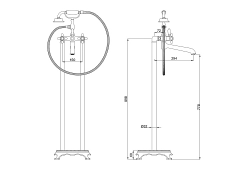 Смеситель для ванны, напольный Wonzon & Woghand WW-88649020-BG