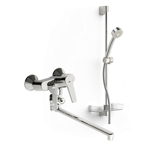 Смеситель для ванны и душа с поворотным изливом (300 мм) и душевым комплектом Oras Apollo. В комплекте с эксцентриками и отражателями. Встроенная опция ограничения расхода и температуры воды.