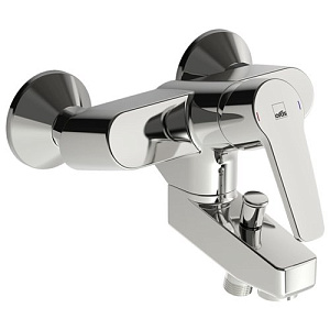 Смеситель настенного монтажа для ванны и душа. В комплекте с эксцентриками и отражателями. Встроенная опция ограничения расхода и температуры воды.