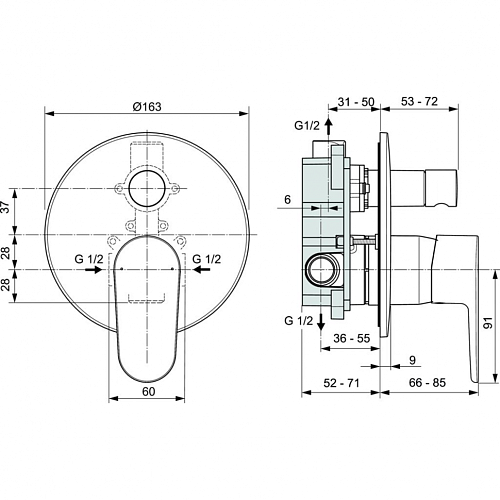CERAFINE O Встраиваемый смеситель для ванны/душа.