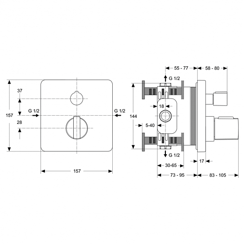CERATHERM 200 Встраиваемый индивидуальный термостатический смеситель для ванны/душа, комплект №2 (внешняя часть).