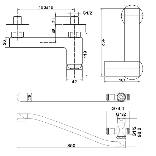 Смеситель для ванны Swedbe VELO K2455 купить по доступной цене