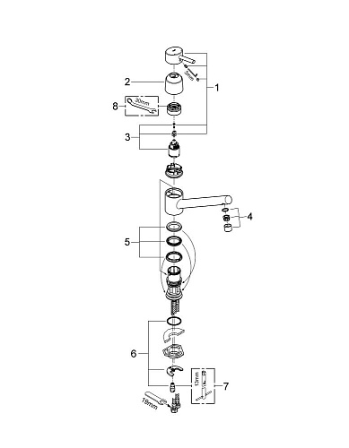 с низким изливом монтаж на одно отверстие GROHE StarLight хромированная поверхность GROHE SilkMove керамический картридж 35 мм аэратор регулировка расхода воды поворотный литой излив область поворота 140° гибкая подводка система быстрого монтажаАртикул 32659001