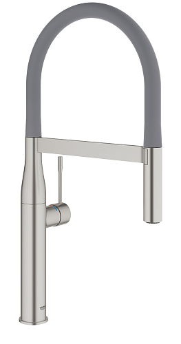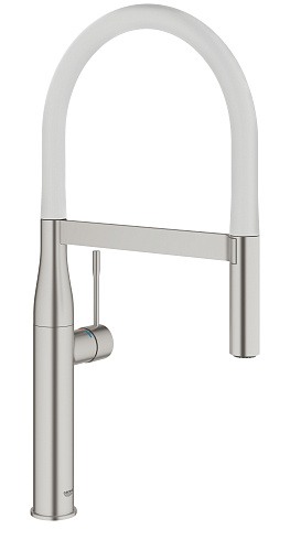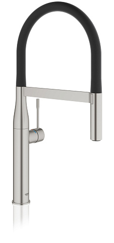 монтаж на одно отверстие GROHE StarLight хромированная поверхность GROHE SilkMove керамический картридж 28 мм аэратор со встроенным ограничителем температуры профессиональная лейка с гибким силиконовым шлангом GROHflexx kitchen переключатель: ламинарный режим струи/душевой режим струи SpeedClean автоматическое возвратное переключение на ламинарный режим струи металлическая лейка GROHE EasyDock M Встроенный магнит для плотного прилегания кронштейна и лейки поворотный излив радиус поворота 360° с защитой от обратного потока гибкая подводка система быстрого монтажаСмеситель Grohe Essence New для мойки