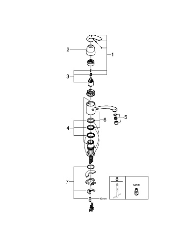 монтаж на одно отверстие GROHE StarLight хромированная поверхность GROHE SilkMove керамический картридж 35 мм аэратор регулировка расхода воды поворотный трубкообразный излив область поворота 140° металлический рычаг гибкая подводка система быстрого монтажа