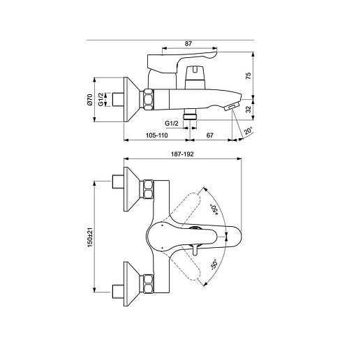 Смеситель Ideal Standard BC489AA Alpha для ванны, Chrome (хром)