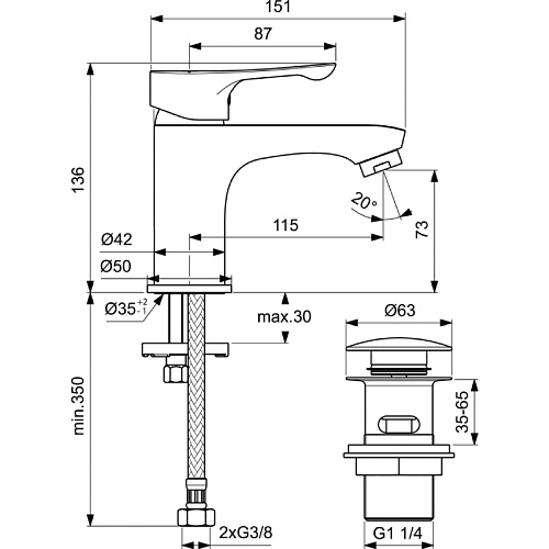 Смеситель Ideal Standard BC814AA Alpha для раковины, хром