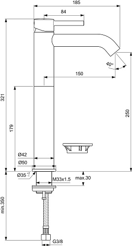 Смеситель Ideal Standard BD137XG Ceraline для раковины, Silk Black (черный матовый)