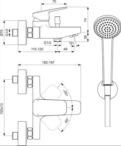 Смеситель Ideal Standard BD258AA Ceraplan для ванны/душа, Chrome (хром) купить по доступной цене