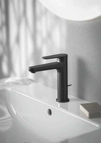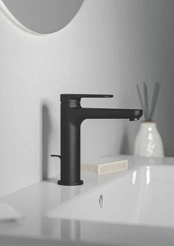 CERAFINE O NUOVO Смеситель для раковины H120 с металлическим донным клапаном, керамический картридж FirmaFlow 28 мм с функцией HWTC (ограничение максимальной температуры горячей воды), металлическая рукоятка с индикаторами горячей / холодной воды, аэратор 3,8 л/мин, система монтажа EASY-FIX (облегченный монтаж), гибкая подводка G3/8". Упаковка без пластика.