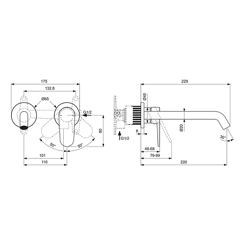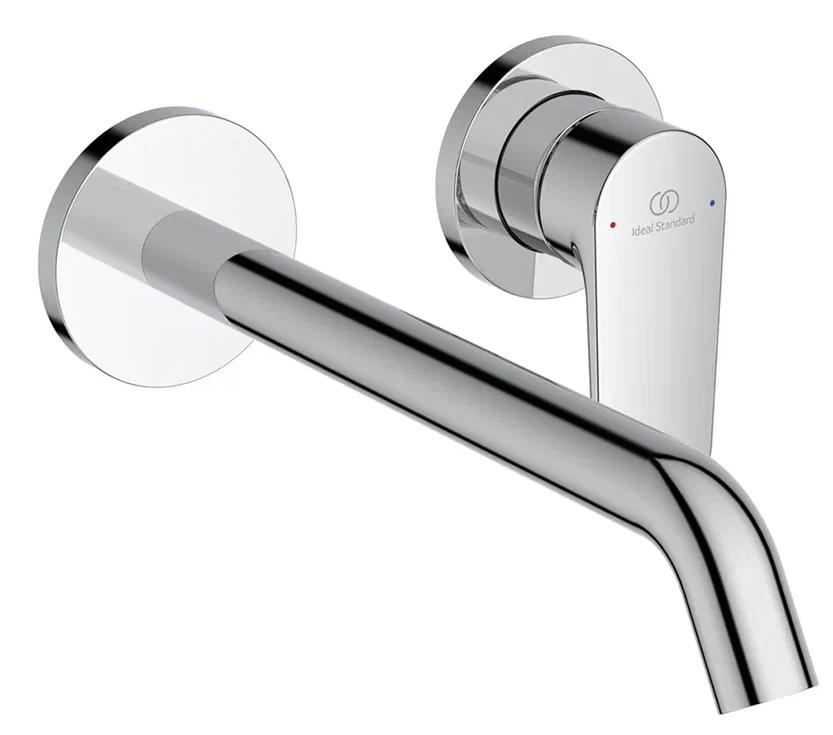 CERAFINE O NUOVO Настенный смеситель для раковины, для монтажа со встраиваемым комплектом A1313NU (заказывается дополнительно), трубчатый излив 220 мм, аэратор 3,8 л/мин, картридж 28 мм FirmaFlow с функцией HWTC, металлическая рукоятка с индикаторами горячей / холодной воды