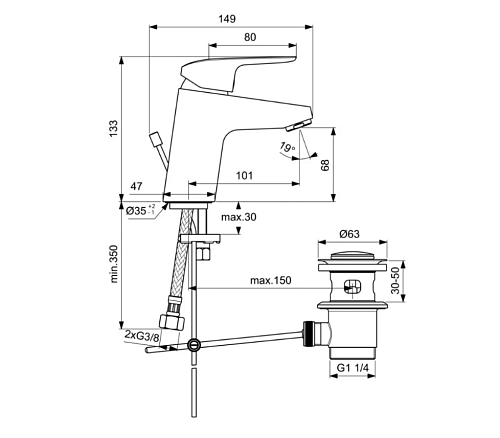 Смеситель Ideal Standard B1707AA Ceraflex для раковины, Chrome (хром)