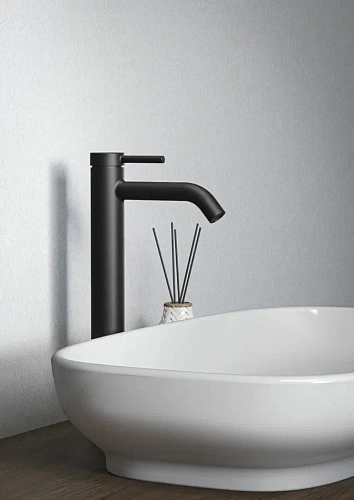 CERALINE NUOVO Смеситель для раковины H240, керамический картридж FirmaFlow 28 мм с функцией HWTC (ограничение максимальной температуры горячей воды), металлическая рукоятка с индикаторами горячей / холодной воды, аэратор 3,8 л/мин, система монтажа EASY-FIX (облегченный монтаж), гибкая подводка G3/8", технология Blue Start. Упаковка без пластика.