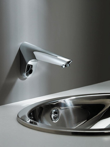 CERAPLUS Электронный наполнитель/излив 150 мм со встроенным ИК-датчиком, антивандальный ламинарный регулятор потока (защита от попадания бактерий). Для монтажа с электронным блоком A3807NU, A3808NU, A3809NU и с термостатом A3813NU. Технология Celec. Рекомендована предварительная установка фильтра 50 мм.