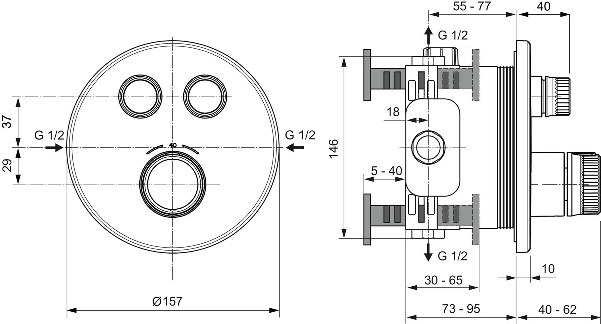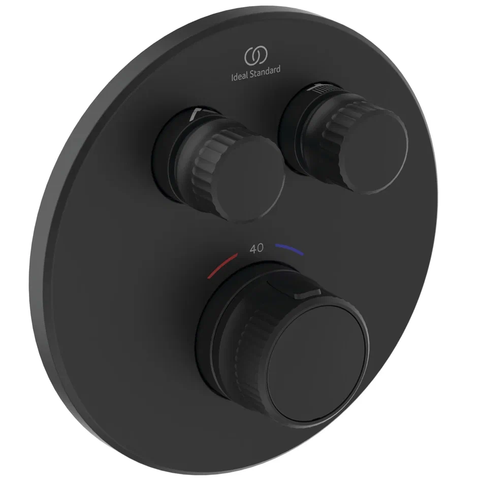 CERATHERM NAVIGO Встраиваемый термостатический смеситель для душа, комплект №2 (функциональный комплект и накладка для настенного монтажа); термостатический картридж FirmaFlow Therm; без душевого гарнитура; 2 рукоятки потока - управление двумя независимыми друг от друга потоками (2-х функциональные металлические рукоятки - включение/выключение нажатием и регулировка потока поворотом); металлическая рукоятка с ограничителем температуры 40°C, с насечкамим для удобного захвата; плоская металлическая накладка. Простота в эксплуатации благодаря эргономичным ручкам и достаточному расстоянию между элементами управления. Для монтажа с комплектом EASY-BOX A1000NU (заказывается дополнительно)