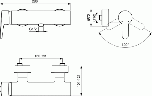 CONNECT BLUE Настенный однорычажный смеситель для душа.