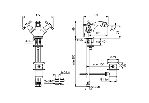 REFLECTIONS Смеситель для биде под 1 отверстие, система монтажа EASY-FIX (облегченный монтаж), гибкая подводка G3/8, керамические кранбуксы G1/2”, литой корпус с отверстием под стержень донного клапана, металлический донный клапан, металлические рукоятки с индикатором горячей/холодной воды, аэратор CASCADE M24x1 на шаровом шарнире.