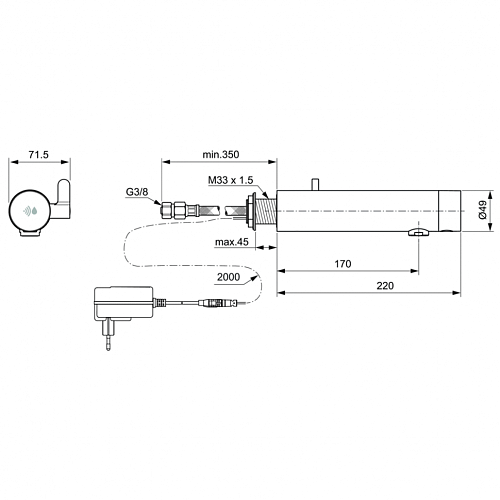 Смеситель Ideal Standard A7564AA Sensorflow New для раковины электронный (со смешиванием) для монтажа на панели, Chrome (хром)