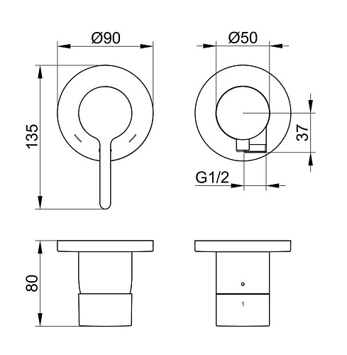 Оснащение Смеситель с ограничителем температуры, рычаг, гильза, розетка (круглая), встраиваемый переключатель с рукояткой, гильзой, розеткой (круглой), запорный вентиль, обратный клапан.