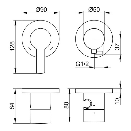 Оснащение Смеситель с ограничителем температуры, рычаг, гильза, розетка (круглая), встраиваемый переключатель с выводом для шланга с конической гайкой и держателем, рукояткой, гильзой, розеткой (круглой), запорный вентиль, обратный клапан.