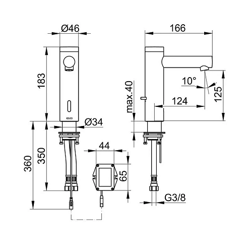 Оснащение Инфракрасный сенсор (расстояние срабатывания и время с задержки регулируются), система быстрого монтажа на одно отверстие, аэратор M20x1, шланги подвоки 435 мм, G3/8 дюйма.