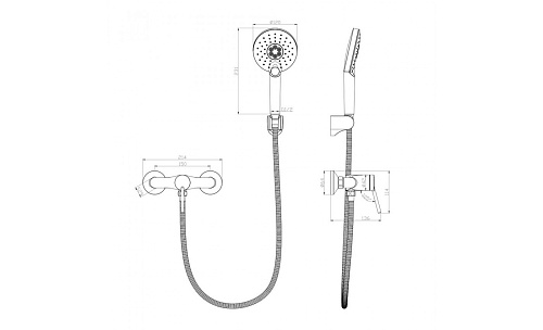 • Аксессуары в комплекте: шланг 1,5 м, настенное поворотное крепление для лейки, 3-функциональная лейка Ø120x240 мм