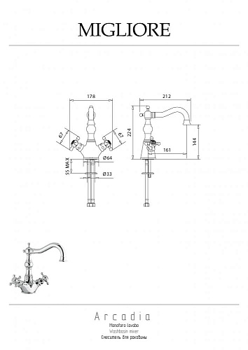 Внимание: бронзовое покрытие достаточно деликатное и для ухода рекомендуется протирать изделие мягкой безворсовой тряпочкой с мыльным раствором и вытирать насухо или использовать чистящее средство бренда Migliore для смесителей и аксессуаров с деликатными покрытиями бронза, золото, медь.