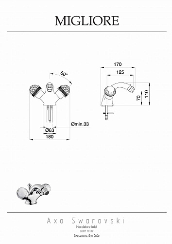 Смеситель Migliore 18474 Axo Swarovski для биде, бронза