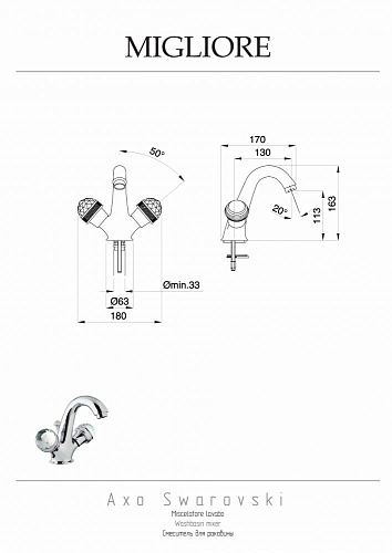 Смеситель Migliore 18510 Axo Swarovski для раковины, золото