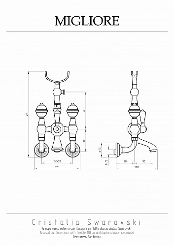 Внимание: бронзовое покрытие достаточно деликатное и для ухода рекомендуется протирать изделие мягкой безворсовой тряпочкой с мыльным раствором и вытирать насухо или использовать чистящее средство бренда Migliore для смесителей и аксессуаров с деликатными покрытиями бронза, золото, медь.