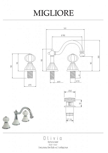 Смеситель Migliore 19002 Olivia для биде, Click-clack, белый/хром