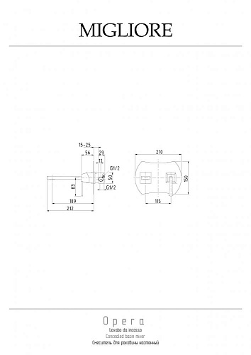 Смеситель Migliore 19052 Opera скрытого монтажа для раковины монокомандный, золото