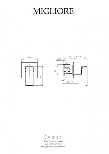 Смеситель Migliore 25399 Kvant скрытого монтажа монокомандный, хром