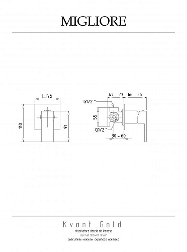 Смеситель Migliore 25400 Kvant Gold скрытого монтажа монокомандный, золото