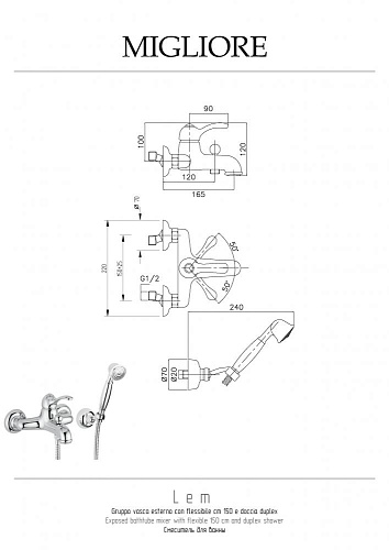 Смеситель Migliore 25866 Lem для ванны монокомандный, внешний, бронза