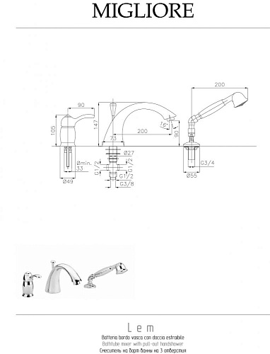 Смеситель Migliore 25874 Lem на борт ванны монокомандный, хром