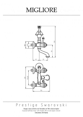 Смеситель Migliore 28003 Prestige Crystal для ванны внешний, хром