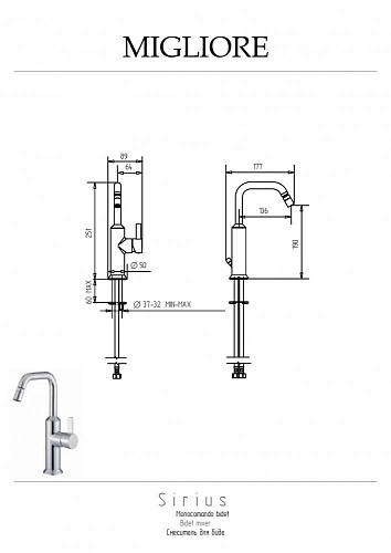 Смеситель Migliore 28175 Sirius для биде монокомандный, без слива, хром