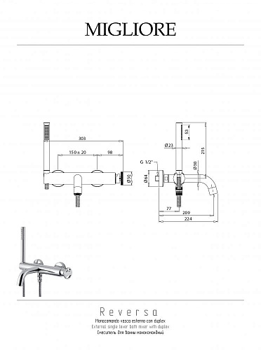 Смеситель Migliore 28187 Reversa для ванны монокомандный, внешний, хром