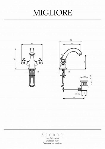 Внимание: бронзовое покрытие достаточно деликатное и для ухода рекомендуется протирать изделие мягкой безворсовой тряпочкой с мыльным раствором и вытирать насухо или использовать чистящее средство бренда Migliore для смесителей и аксессуаров с деликатными покрытиями бронза, золото, медь.