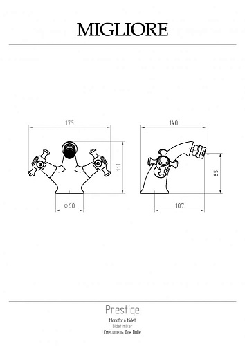 Смеситель Migliore 31603 Prestige для биде, Click-clack, бронза