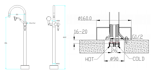 Смеситель напольный Boheme BRILLANTE 269-SW